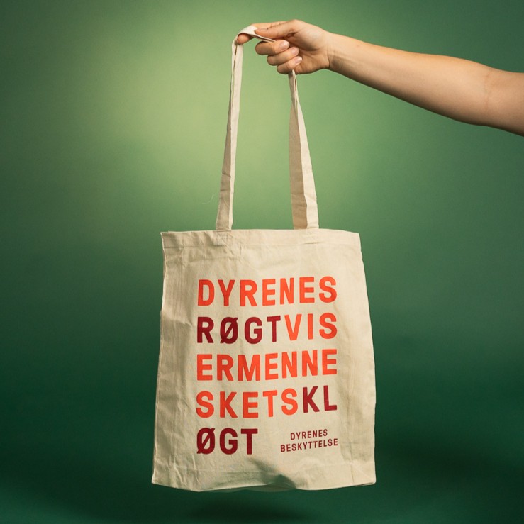 Tekst på mulepose: Dyrenes røgt viser menneskets kløgt.