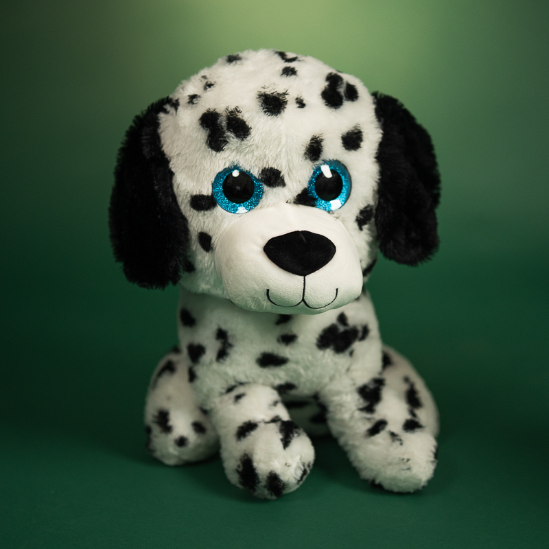 Han er en sød hund med meget store og flotte blå hundeøjne. Han vil være en perfekt julegave til barnet, der elsker bamser og dyr.