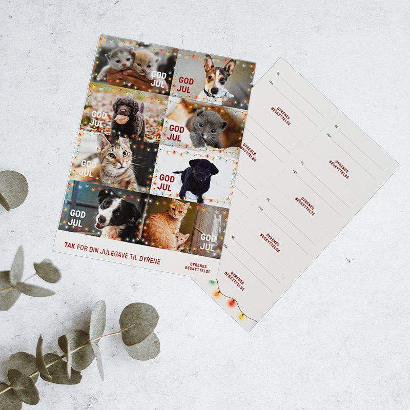 Et ark består af 8 til og fra kort med forskellige dyremotiver.