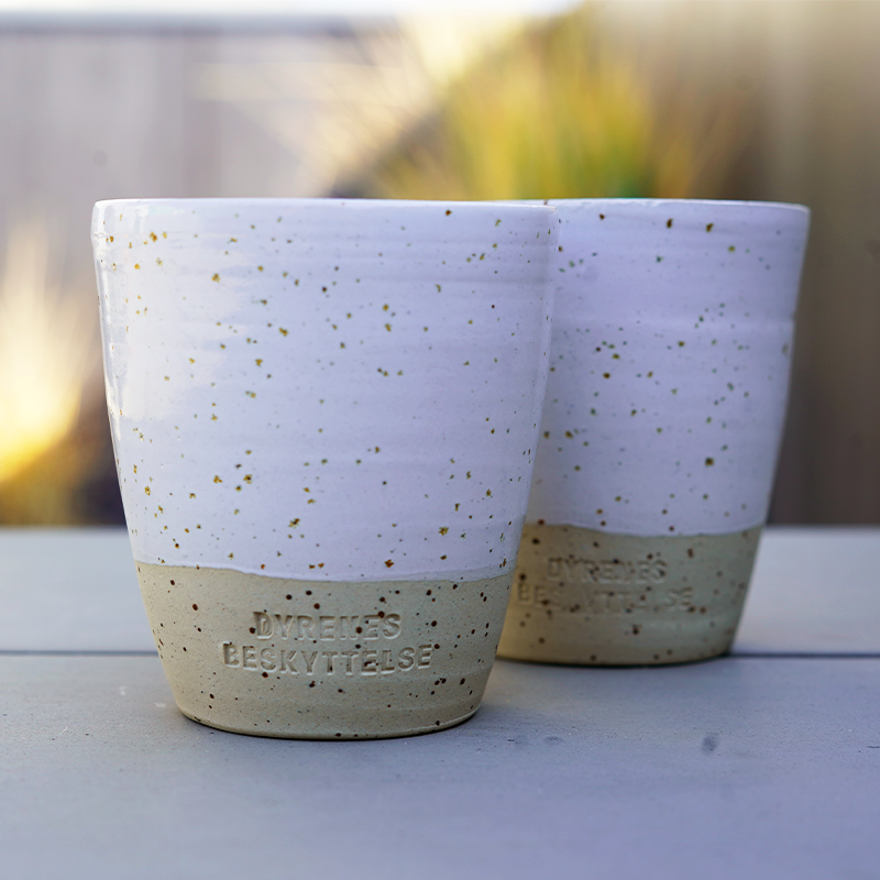 Hold varmen i vintermånederne med disse håndlavede keramikkopper fra Bornholm. Kopperne er gode at holde om og har et stilrent design, med deres hvide farve og ler med lava. Dyrenes Beskyttelses logo er trykt på koppen.