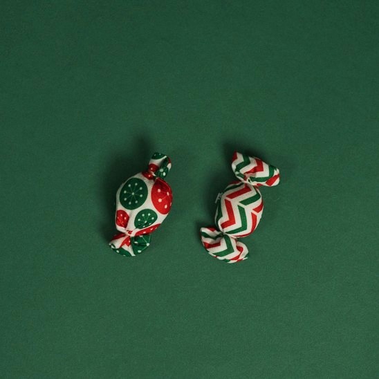 Find årets julegave til din kat i form af bløde legetøjs karameller med knitrefunktion. De er dekoreret med julemønster og julefarver.