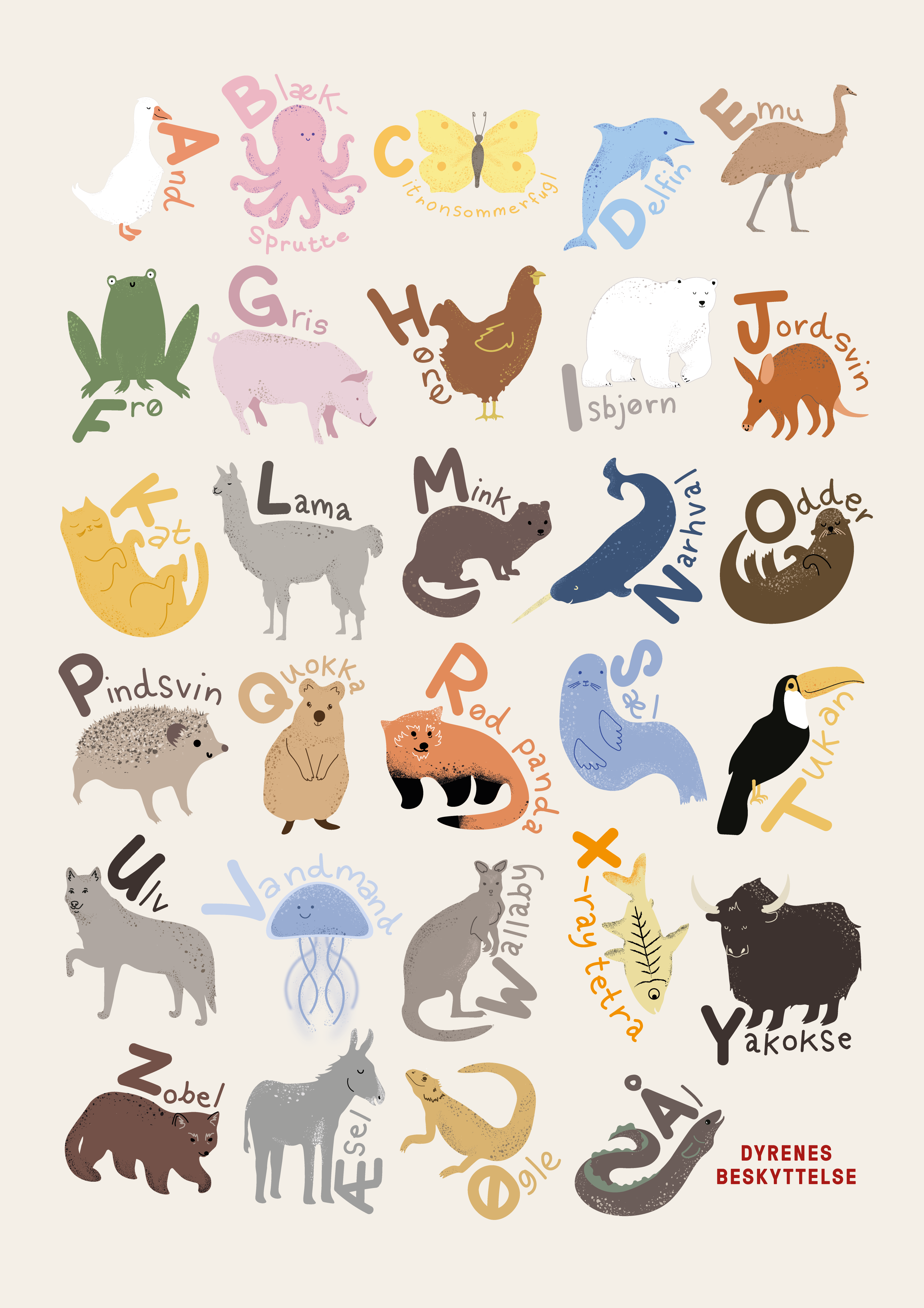 ABC Dyreplakat – lær alfabetet med dyrene 🐾