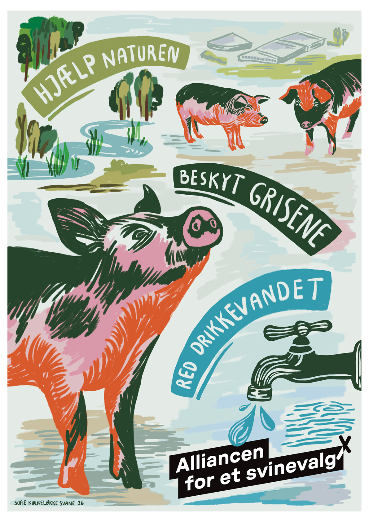 Med den smukke plakat lavet af Sofie Kirkeløkke Svane kan du være med til at slå et slag for et svinevalg.